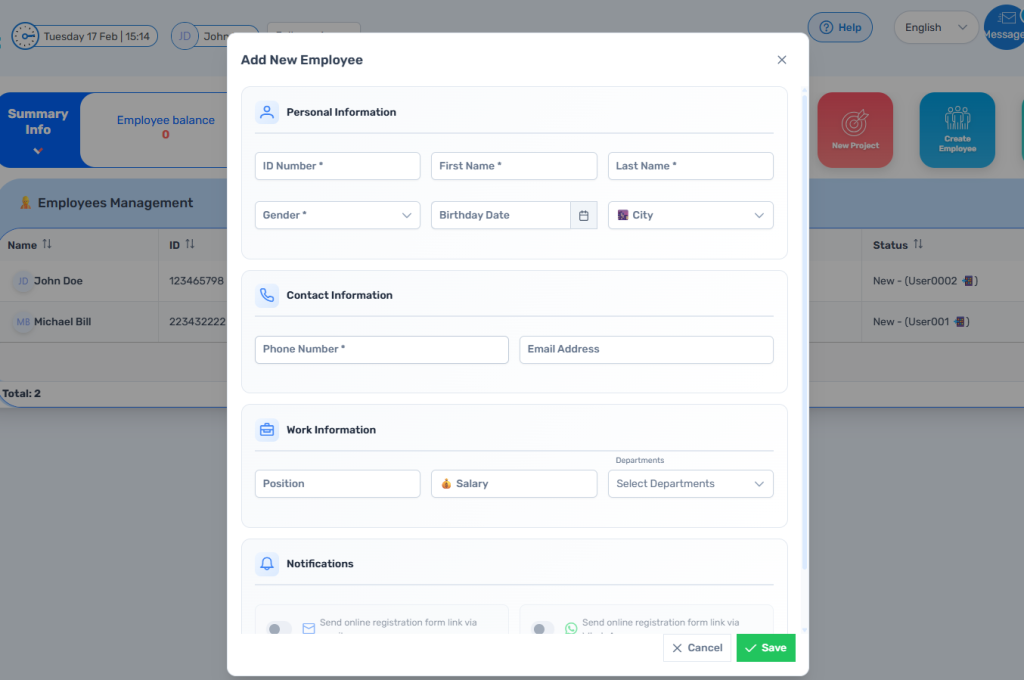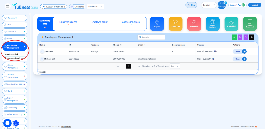 Follow the steps below to Create a New Employee in the Employees Management section of the CRM.